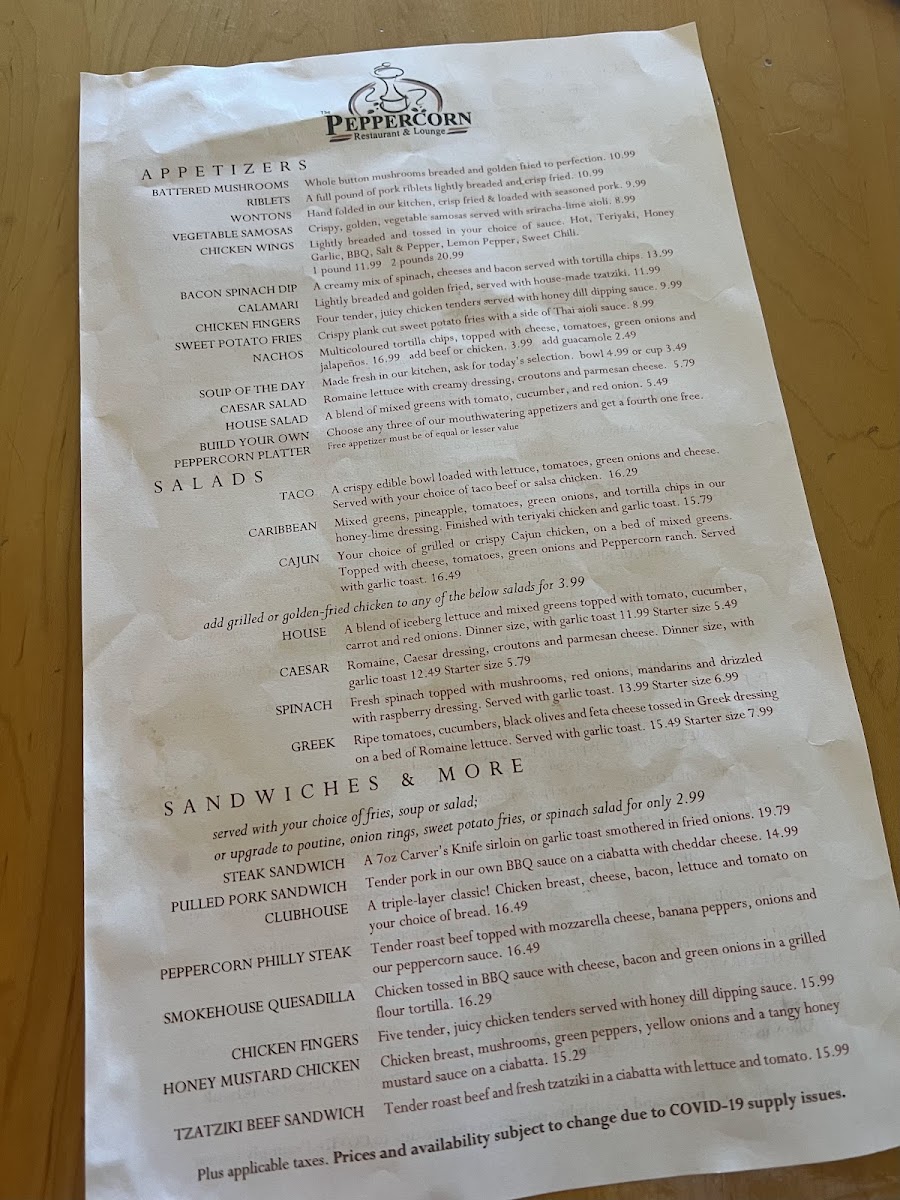 Welcome to The Peppercorn Restaurant and Fireside Lounge, a hidden gem nestled in Oakbank, Manitoba. This charming eatery presents a diverse menu that caters to every palate. The appetizer selection is tantalizing, featuring favorites like Battered Mushrooms and Calamari to kick off your meal. For heartier options, indulge in their renowned Pulled Pork Sandwich or the impressive Peppercorn Philly Steak.